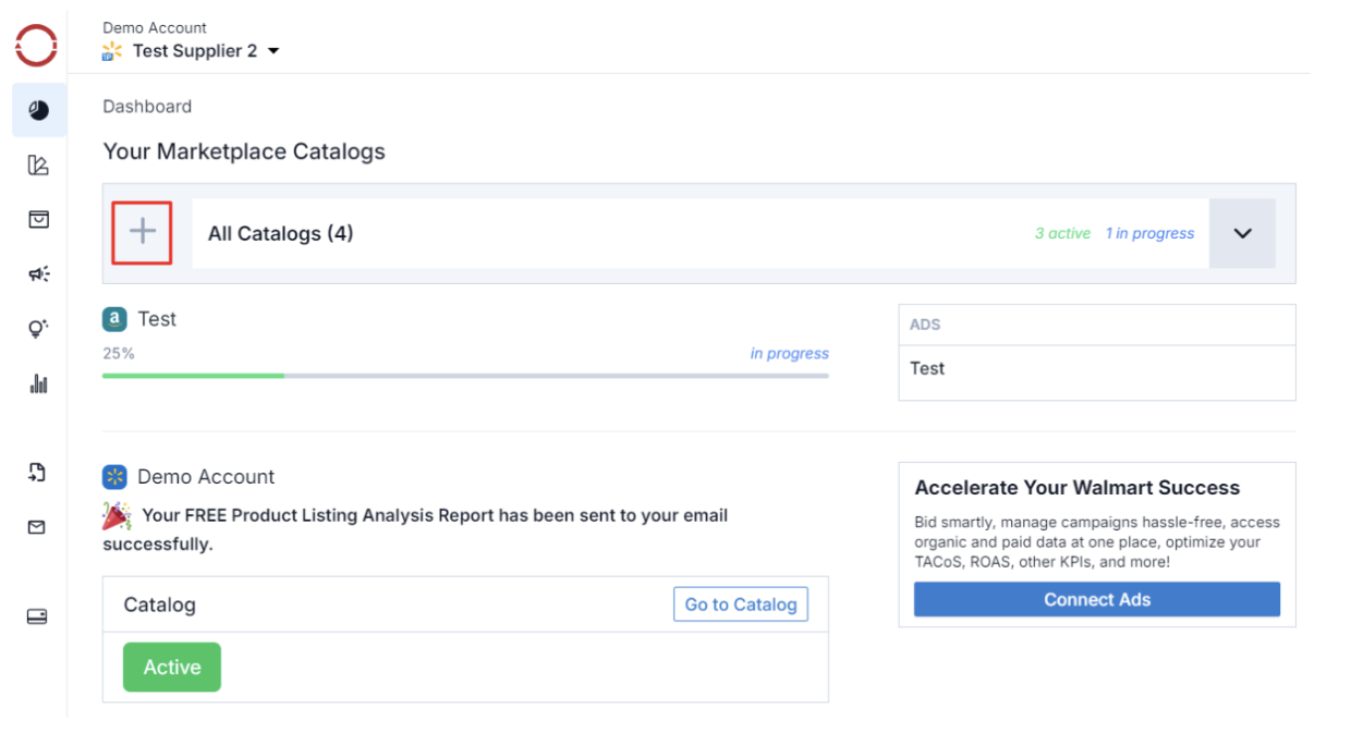 -> On the platform, you can get an overview of your catalog, take actions on personalized growth recommendations, optimize your content, publish enhanced brand content, track keywords, run ad campaigns, and much more!